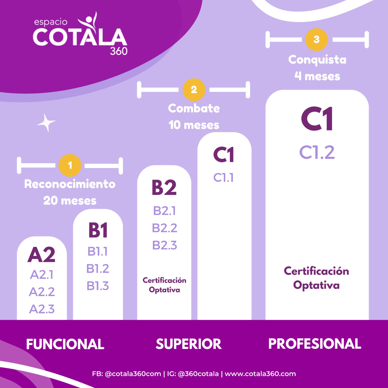 Contamos con una Ruta de aprendizaje y está diseñada para funcionar como una herramienta de control de calidad y son los pasos a seguir para garantizar la colocación en el nivel de fluidez adecuado y haya progreso rápidamente hasta el logro de tus objetivos.